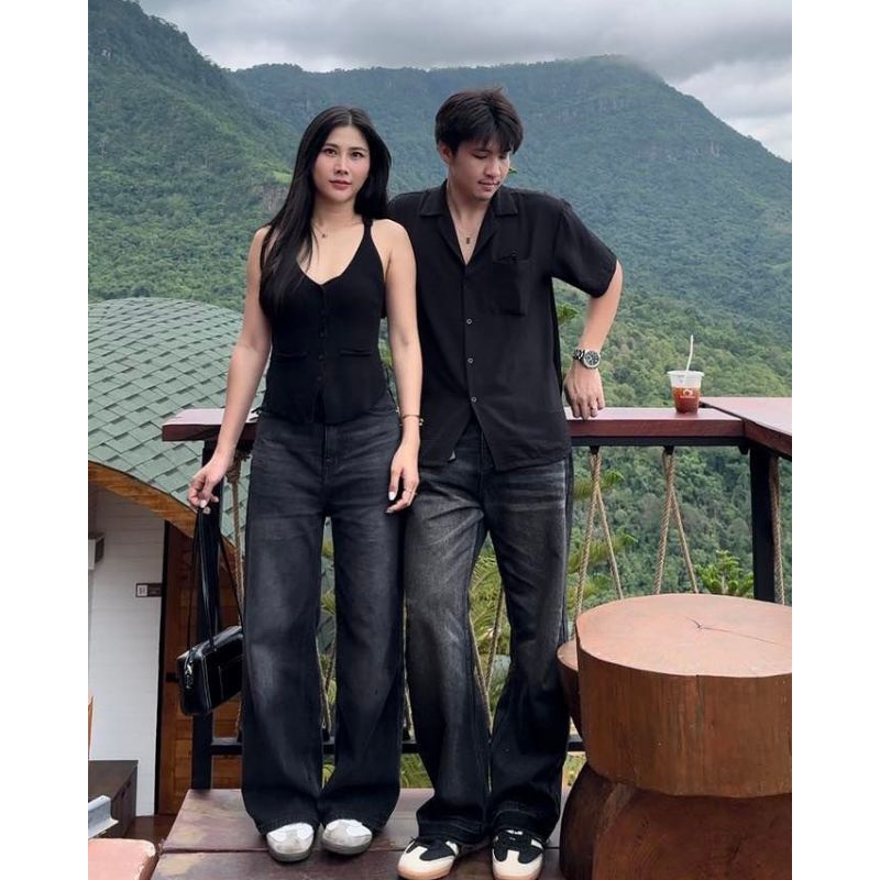 Celana Jeans Skena Wanita Highwaist Oversize Baggy Wisker Korean Style Trens Milenial Retro