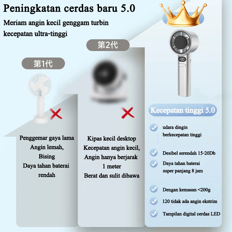 Kipas Angin Portable 15000mah Turbo Mini Tangan Genggam Lcd Display 150 Gear