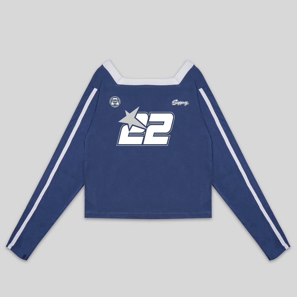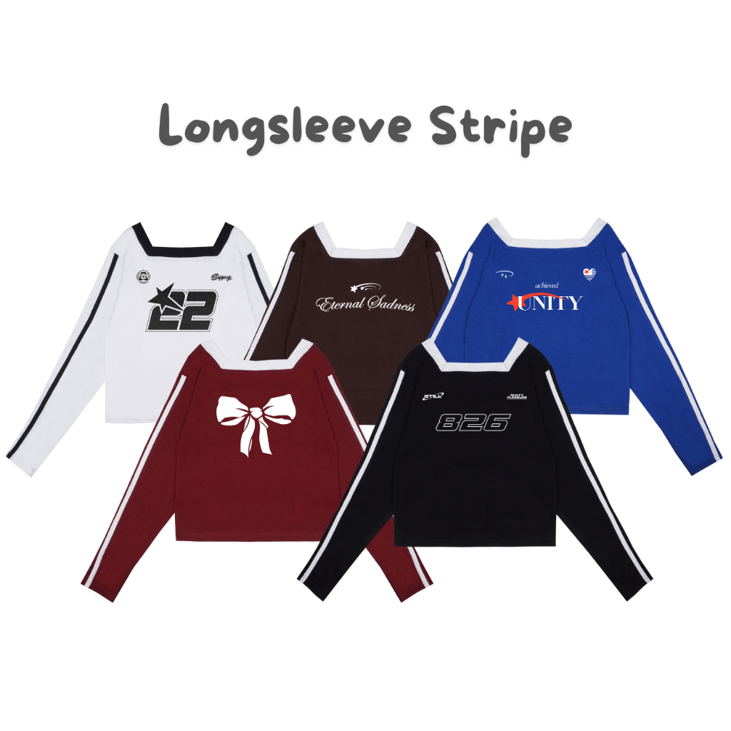 Anaira Kaos y2k Longsleeve Kerah off shoulder stripe longsleeve Lengan Panjang vintage crop wanita longsleeve sport atas
