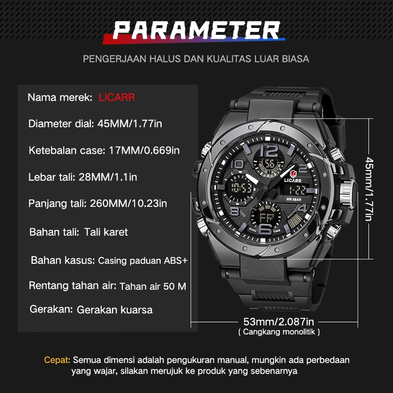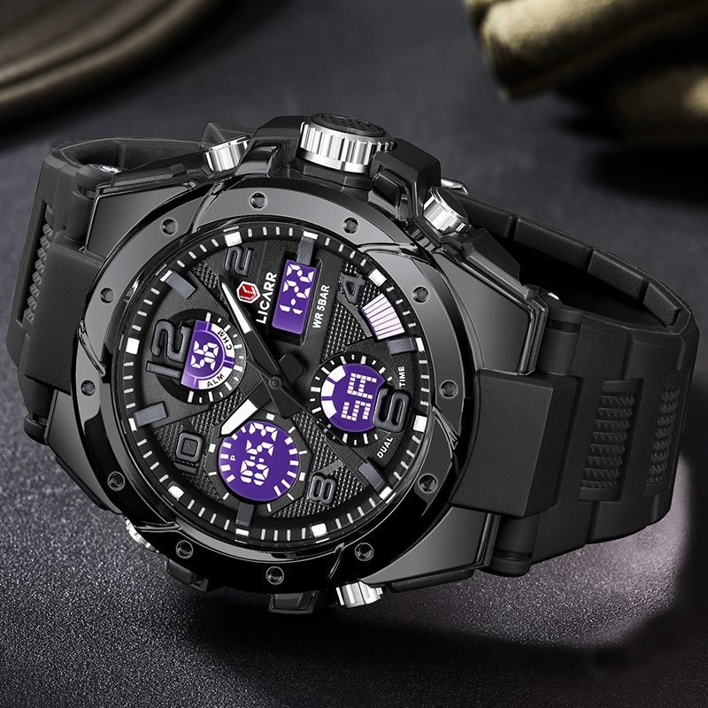 Licarr Jam Tangan Pria Merek Fashion Analog Digital Santai Kuarsa Anti Air Olahraga Multifungsi Jam Tangan Cowok Origina