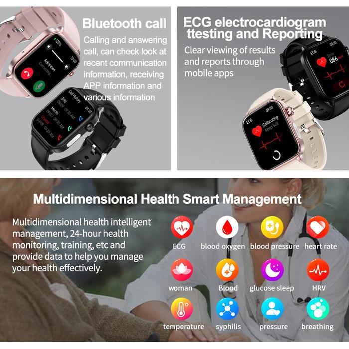 Jam Tangan Non-Invasive Blood Glucose Blood Lipid Uric Acid Ecg Smartwatch Blood Pressure Body Temperature Monitoring Ja