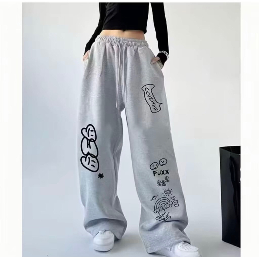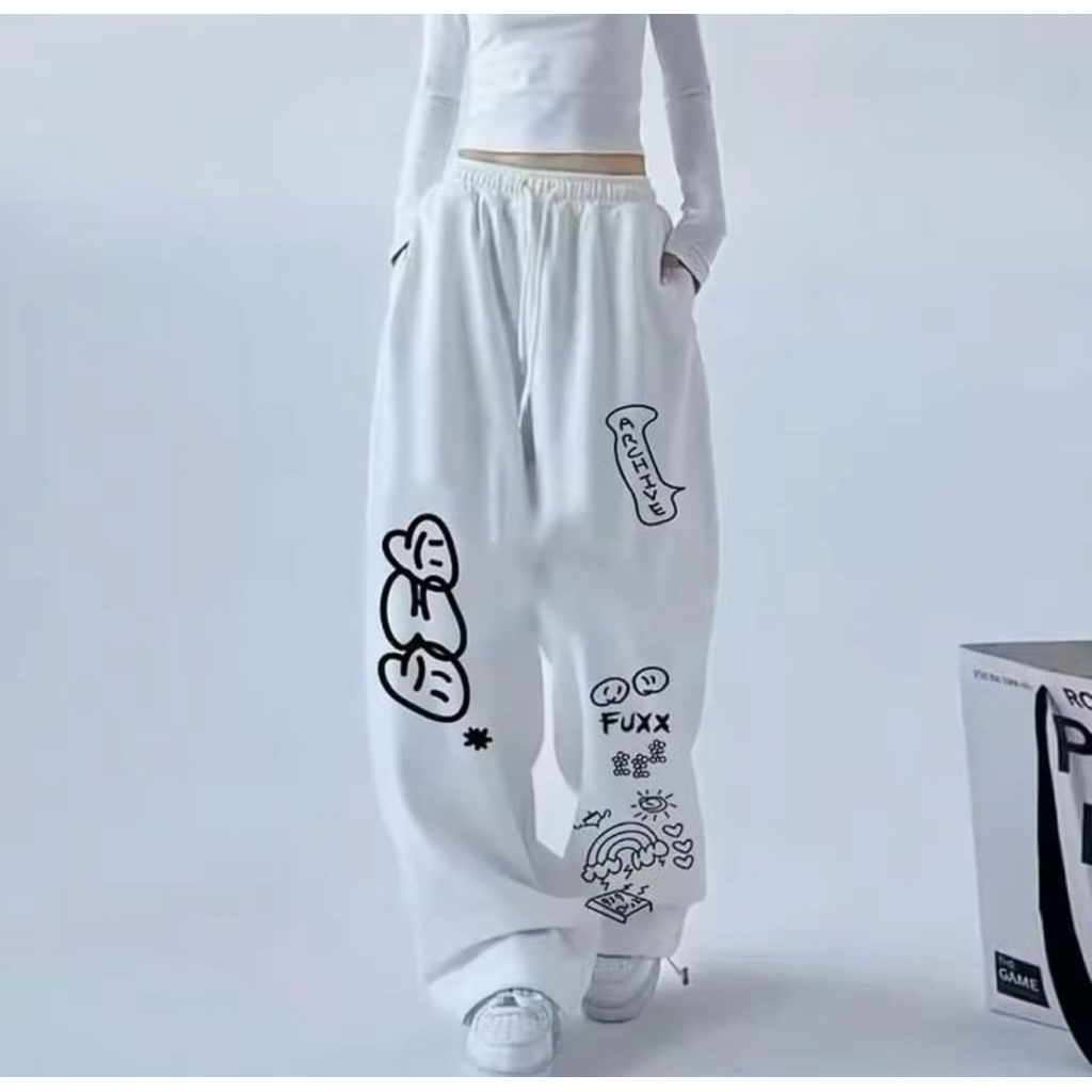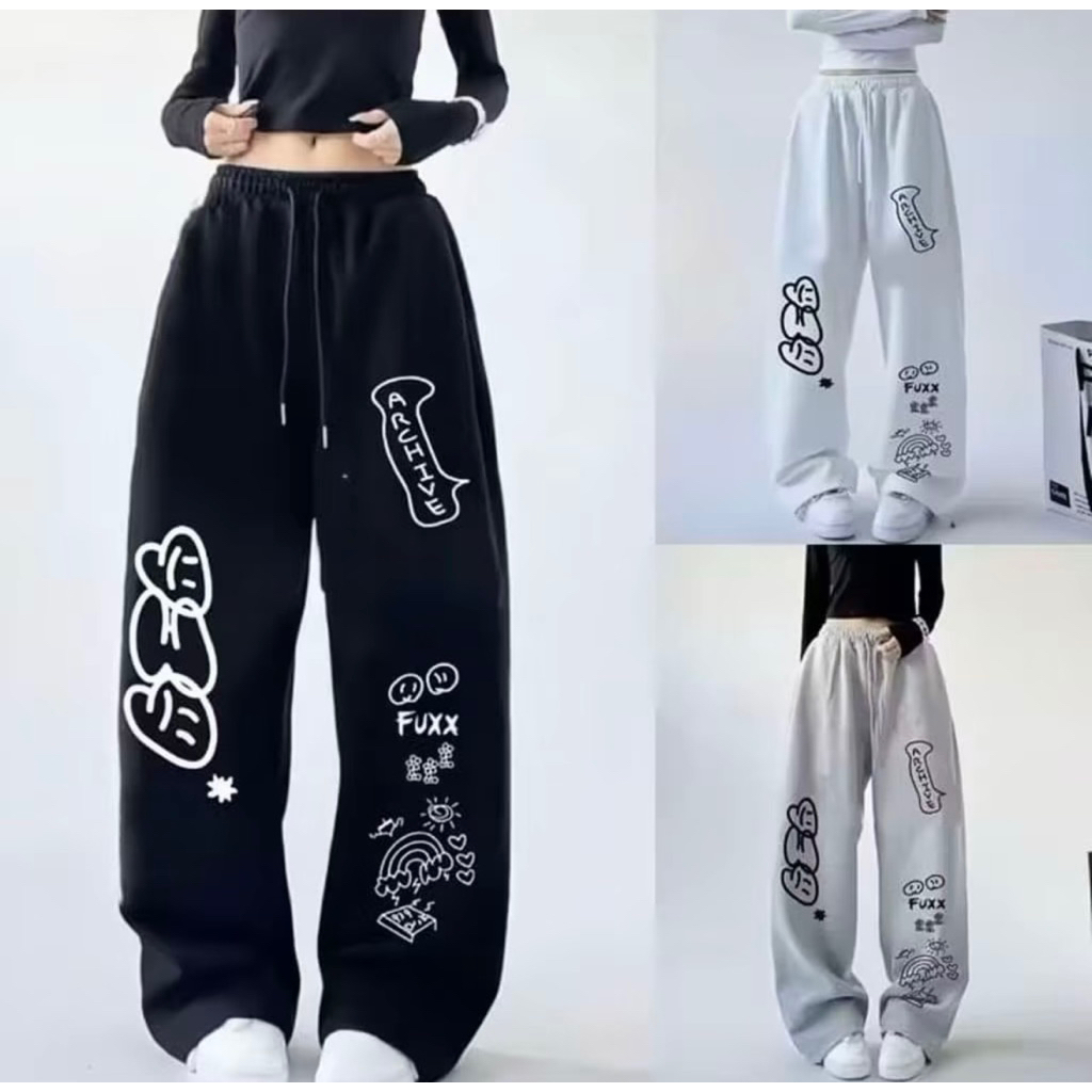 Archive Baggy Pants Celana Kulot Skena Printing Style Korean || Celana Kulot Oversize Loose Pants Celana Panjang Wanita