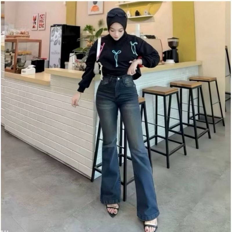 HW Cutbray Jeans Wanita - Celana Cutbray wisker Strecht Kekinian - Cutbray Flared -Streetch Premium