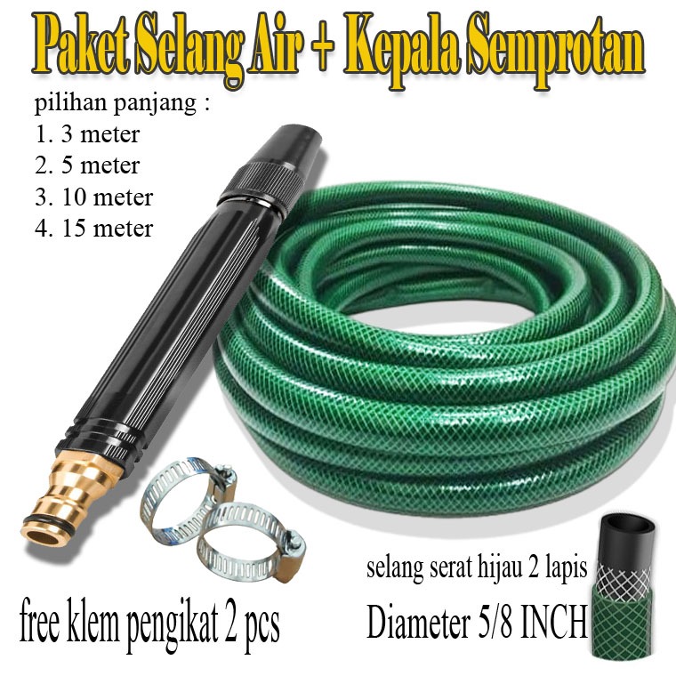 Selang Air Semprotan Benang Hijau Diameter 58 Inch Set Motor Mobil Taman
