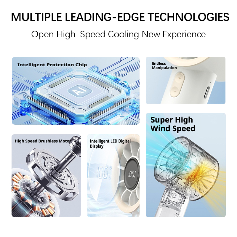Kipas Angin Onlife Mini Portable 3000mah Strong Wind 100 Gear Digital Display Turbo