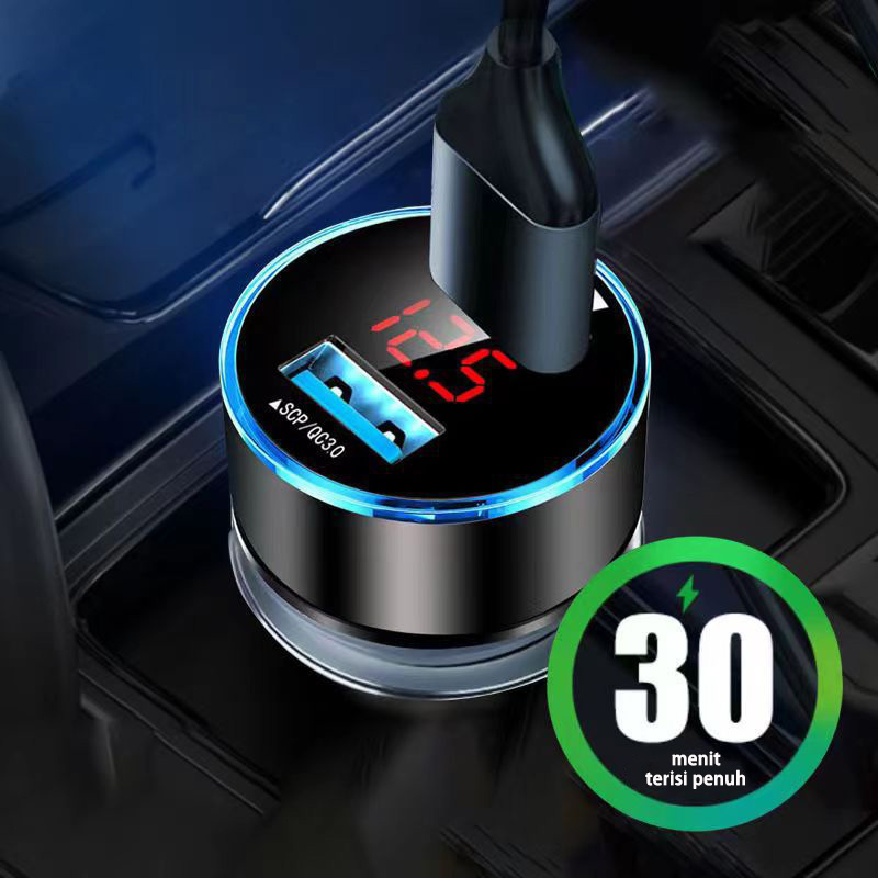 Charger Mobil 2 Ports 3.1A 12V24V Output Fast Charging Led Display Voltmeter
