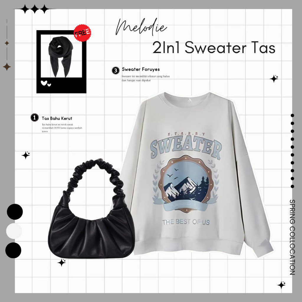 OOTD Skena Wanita | Tas, Sweater Foruyes, Celana Cargo | One Set Hijab Remaja Wanita - MO34