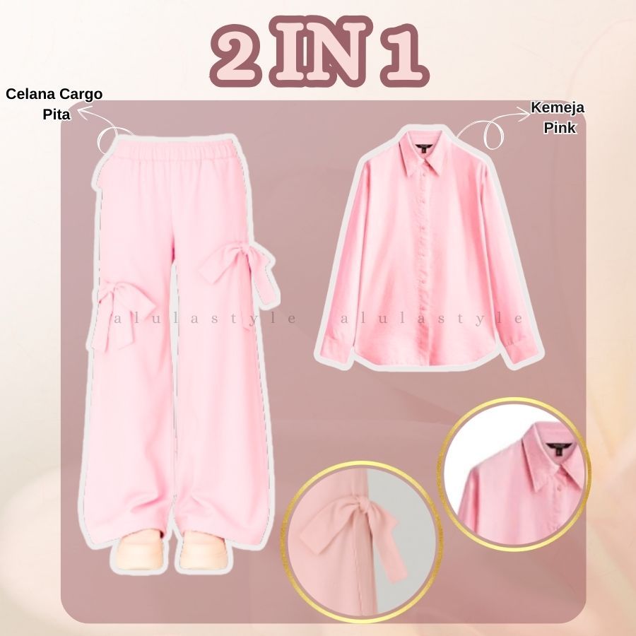 T0P Alulastyle - Set Kemeja + Celana Cargo Pita + Tanktop + Pashmina Style Cewek Pinkys OOTD Skena