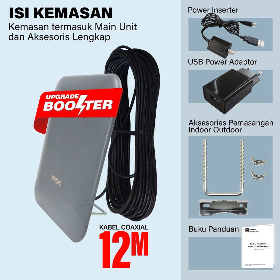 Antena Tv Digital Da6120 Indoor Outdoor Booster Dvbt2 4K Sinyal Stabil Gambar Jernih