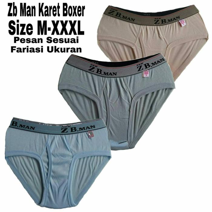 READY ! 3 PCS CELANA DALAM ZB MAN - CELANA DALAM PRIA KARET BOXER - MIX 3 WARNA - M