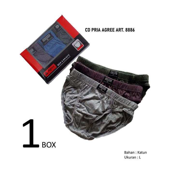 READY ! 1 BOX ISI 3 PCS AGREE CELANA DALAM / CD SEMPAK DALEMAN PRIA COWOK LAKI KATUN AGREE 8886 - AGREE 8886, M
