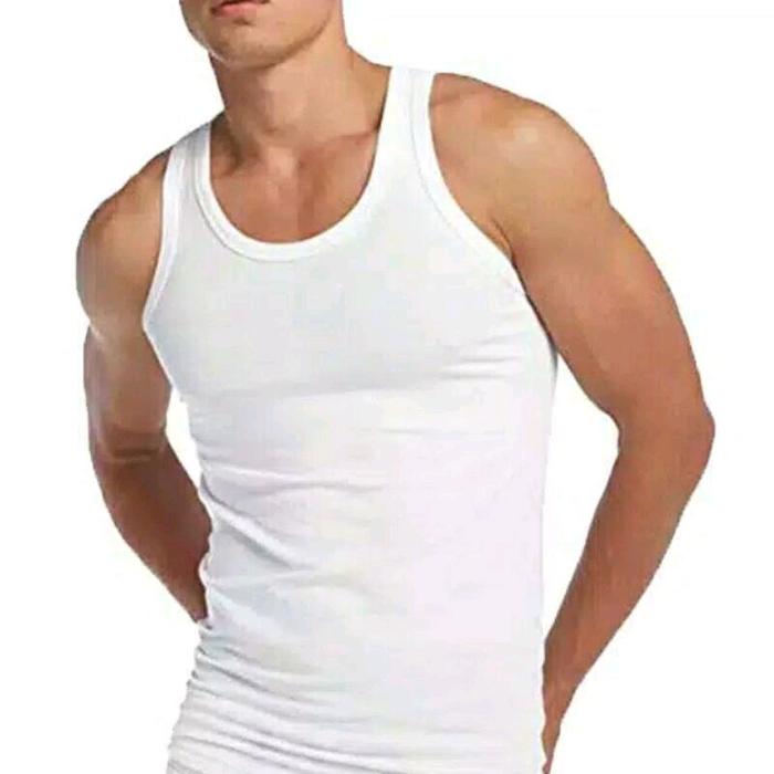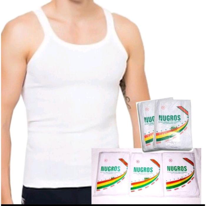 READY ! 6 PCS SINGLET NUGROS PRIA PUTIH TERMURAH | KAOS DALAM PRIA NUGROS PUTIH POLOS KATUN SANTAI - PUTIH, M
