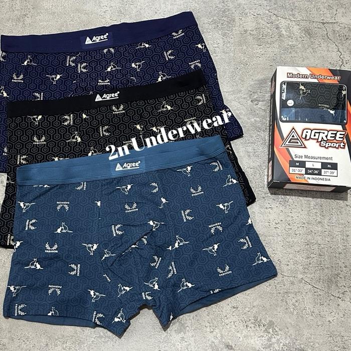 READY ! [3 HELAI] CELANA DALAM MODEL BOXER AGREE SPORT 1232/1233/1237 - MOTIF A, M
