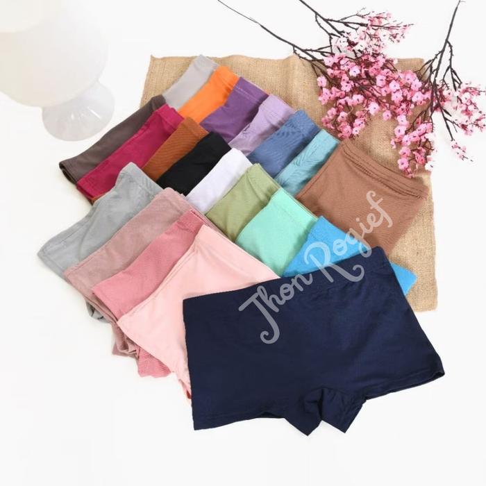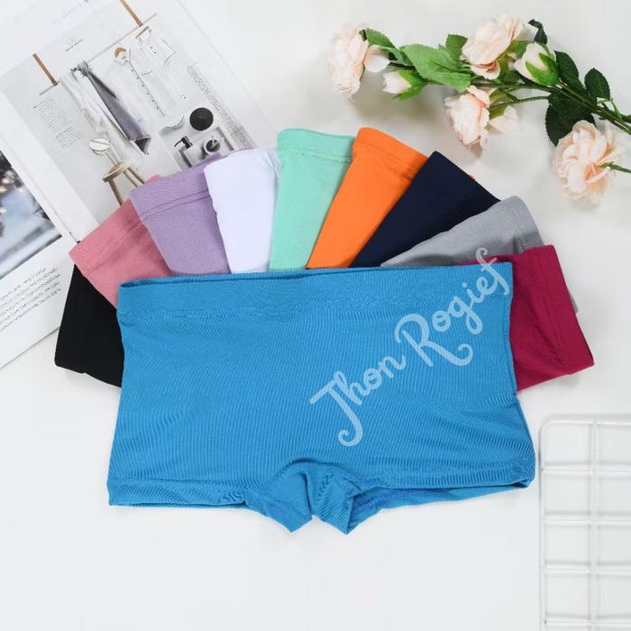 READY ! 10 CELANA DALAM WANITA SHOT POLOS LEMBUT NYAMAN SPANDEX BOXER PENDEK HITAM KATUN DEWASA PITA - 10, M