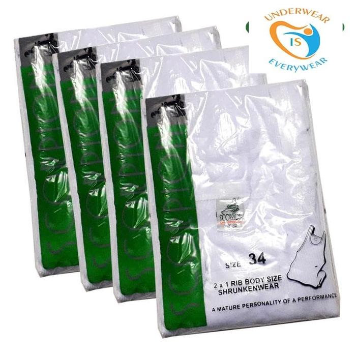 READY ! 1 DAN 2 PCS KAOS DALAM SCORPION - SINGLET PAKAIAN DALAM PRIA DEWASA - PUTIH SALUR - 34, 1 PCS
