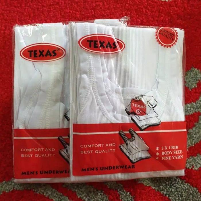READY ! (6PCS) SINGLET PRIA DEWASA TEXAS MURAH ORIGINAL KATUN PUTIH COWOK KAOS - 32