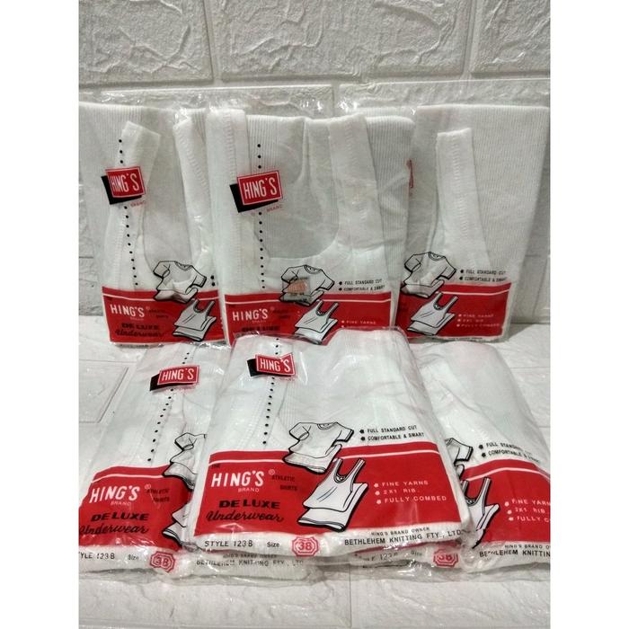 READY ! SINGLET PRIA HING'S ISI 3PCS | KAOS DALAM COWOK HINGS PUTIH BAHAN KATUN LEMBUT - PAKET ISI 1, SIZE 32