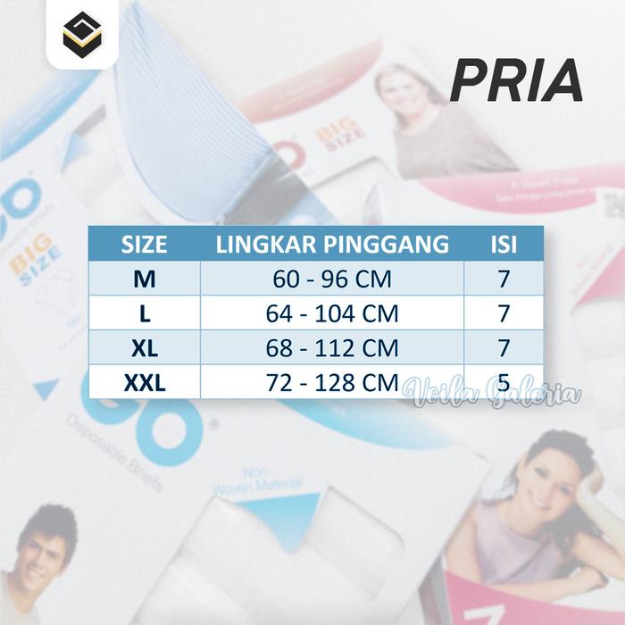 READY ! CELANA DALAM CD SEKALI PAKAI JUST GO DISPOSABLE UNDERWEAR HAJI UMROH TRAVEL - PRIA, M