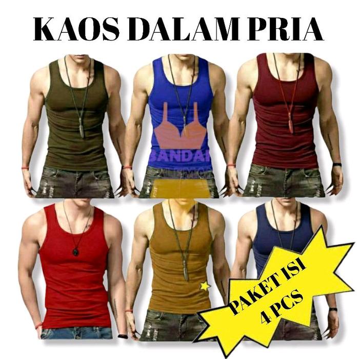 READY ! PAKET ISI 4 KAOS SINGLET TANKTOP PRIA DEWASA MURAH LEMBUT 8 WARNA KATUN - M, HITAM