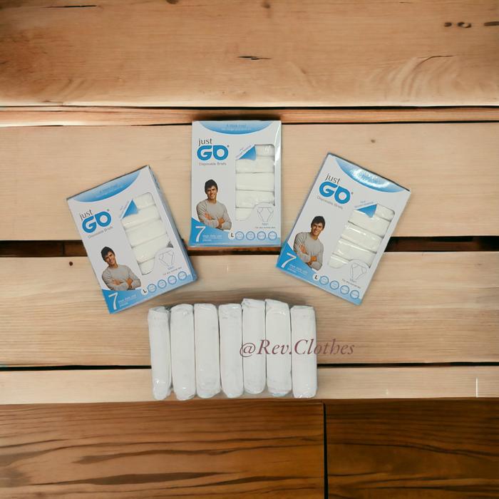 READY ! CELANA DALAM KERTAS JUST GO PRIA PERLENGKAPAN HAJI DAN UMROH PUTIH DEWASA KATUN BOXER - M