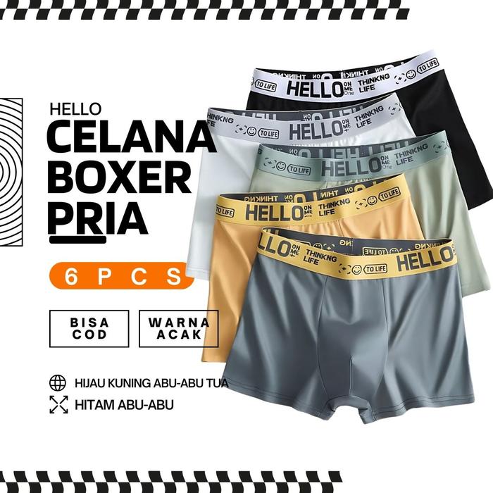 READY ! MH-6PCS-CELANA PENDEK PRIA CELANA BOXER PRIA MEN'S BOXER BRIEFS MEN'S SHORTS NYAMAN KATUN - 6PCS-WARNA ACAK, S