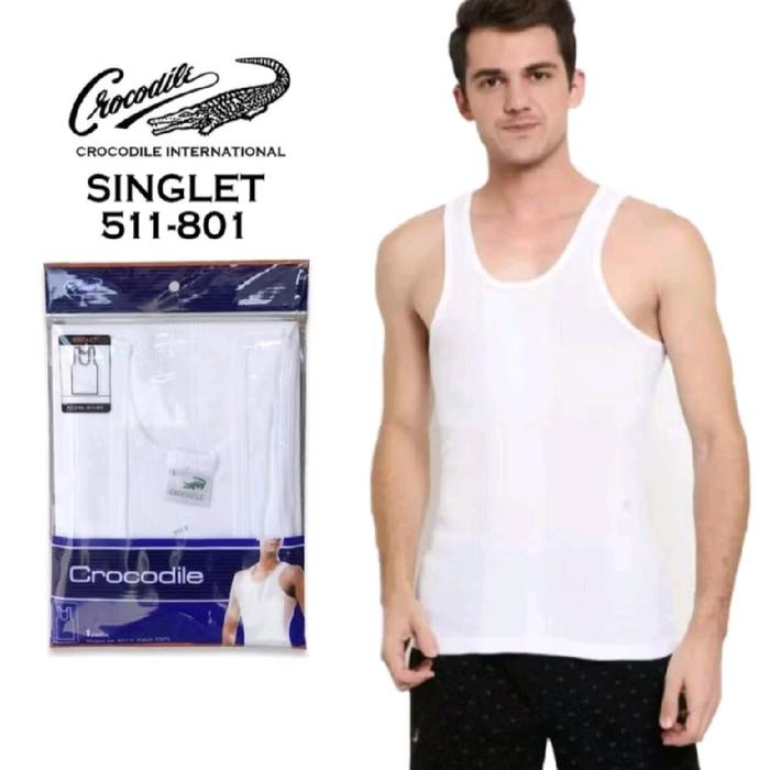 READY ! CROCO~DILE KAOS DALAM PRIA KATUN 801 PUTIH SALUR SINGLET DEWASA COWOK - PUTIH, S
