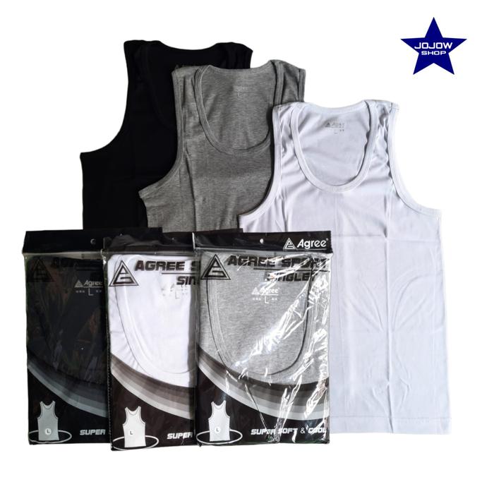 READY ! KAOS DALAM PRIA AGREE SUPER COOL SA 004 || SINGLET PRIA DEWASA - M, PUTIH