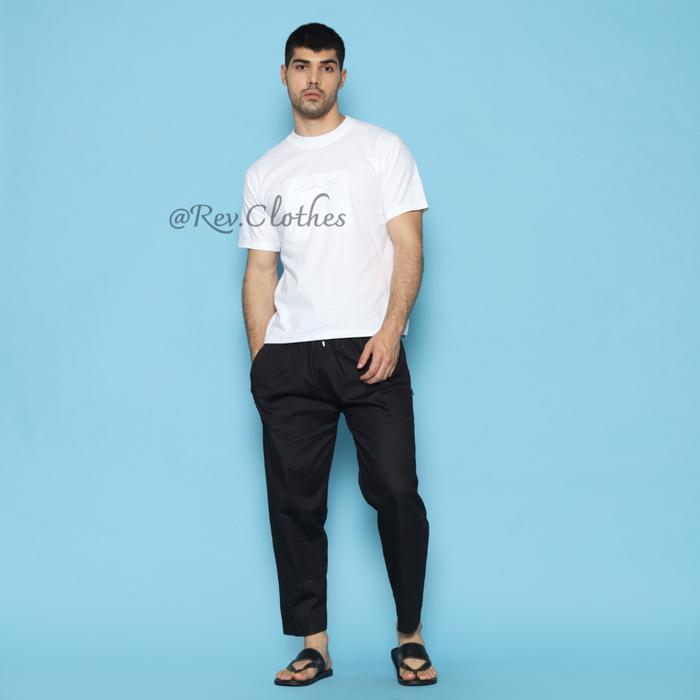 READY ! KAOS OBLONG HAJI UMROH COWOK KANTONG DEPAN RESLETING PUTIH BAHAN CARDET ADEM - LENGAN PENDEK, M