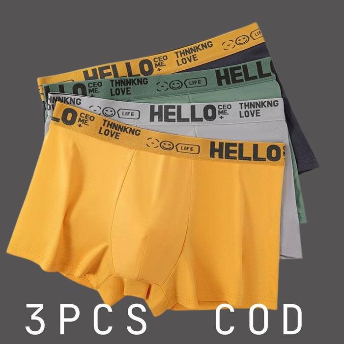 READY ! HALO-[ISI3PCS]CELANA DALAM BOXER PRIA PAKAIAN DALAM YANG NYAMAN KOLOR DEWASA PRIA-J LEMBUT KATUN - 3COLOR, S