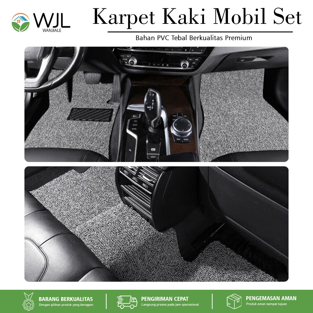 WANJIALE Karpet Mobil 5 Pcs 2 Baris Universal - Mie Bihun PVC - Ketebalan 16MM/ Universal bisa diaplikasikan ke semua m