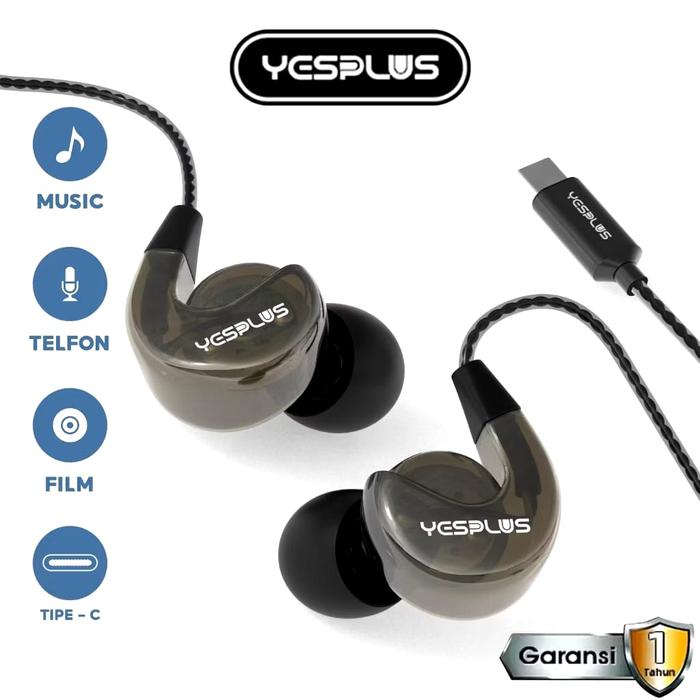 Yesplus Headset Ys-143 Type-C Subwoofer 3 Dimensi Headset Suara Bass Dengan Desain Transparan
