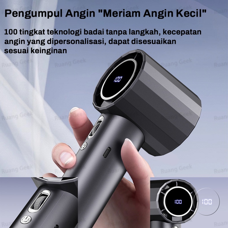 Kipas Angin Mini Genggam Turbo 100 Speed Led Usb Rechargeable 24 Jam