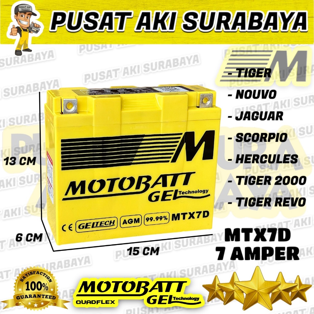 Aki Motor Motobatt Mtx7d Nouvo Tiger Scorpio Tiger Revo Accu Gel Kering Original