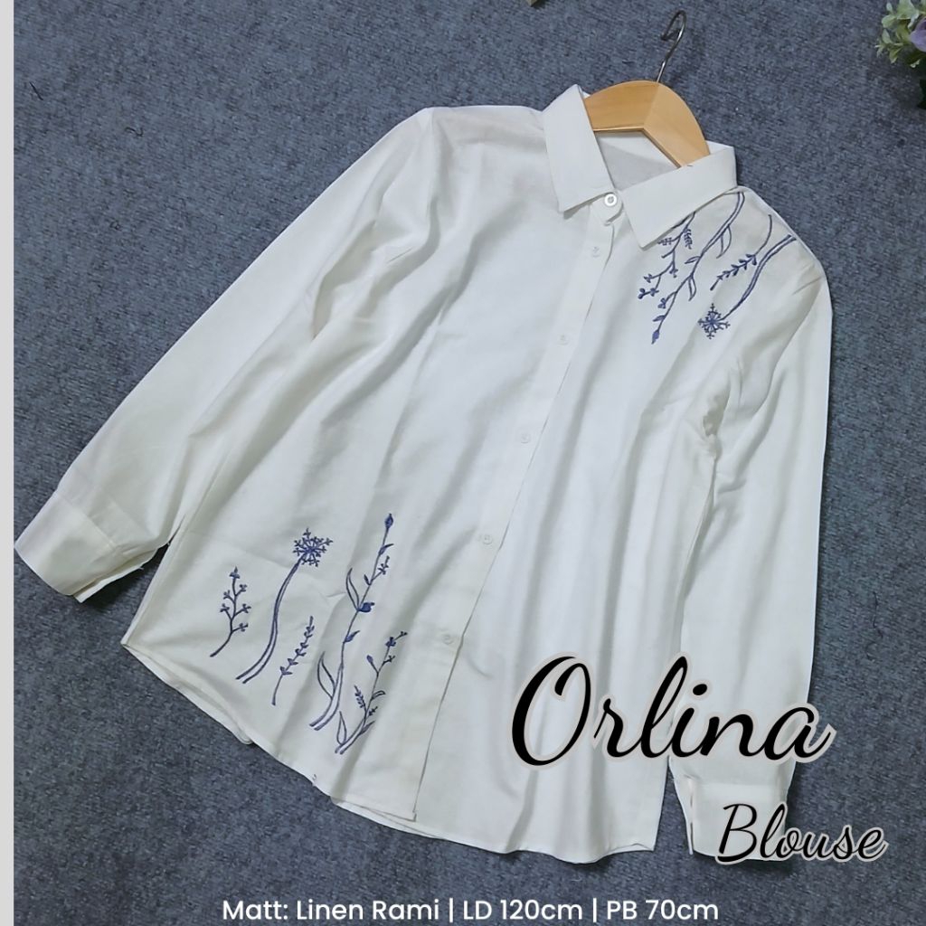 Blouse Atasan Wanita Bahan Linen Rami Bordir LD 120cm