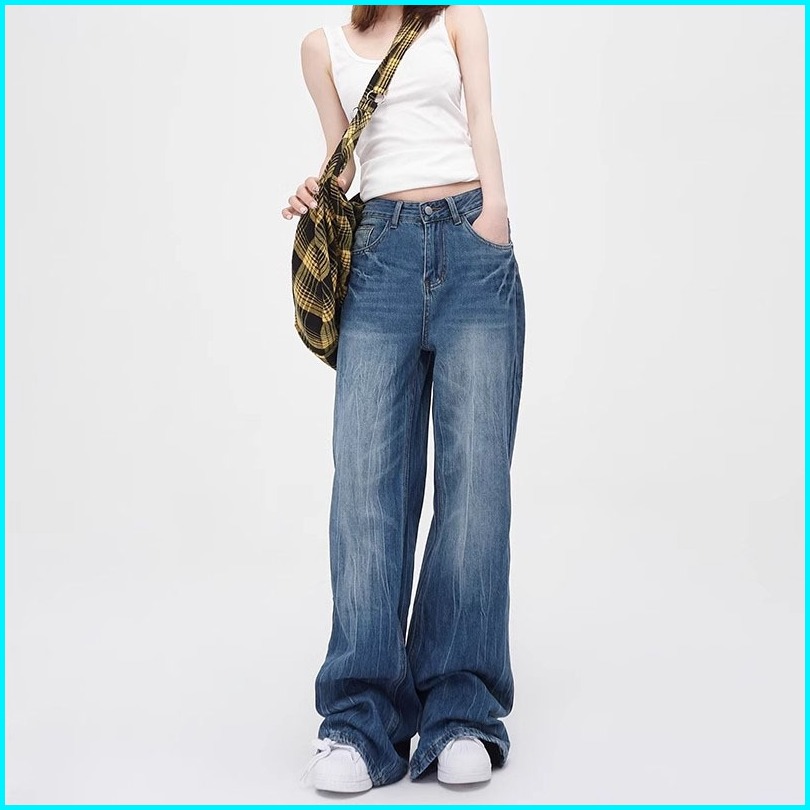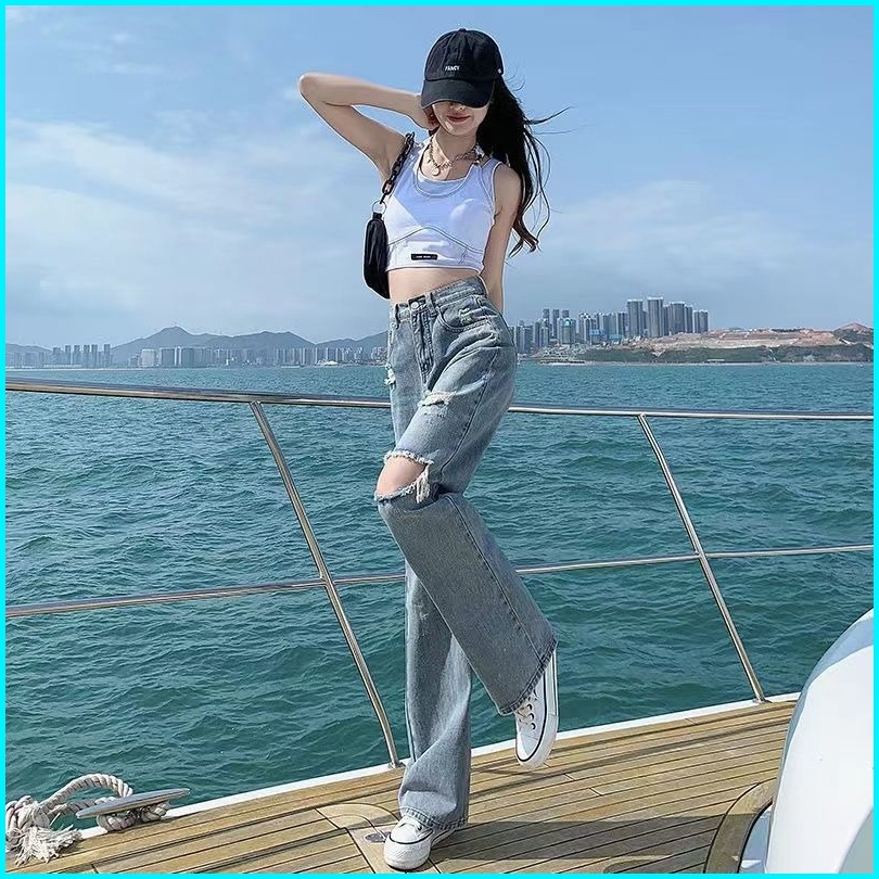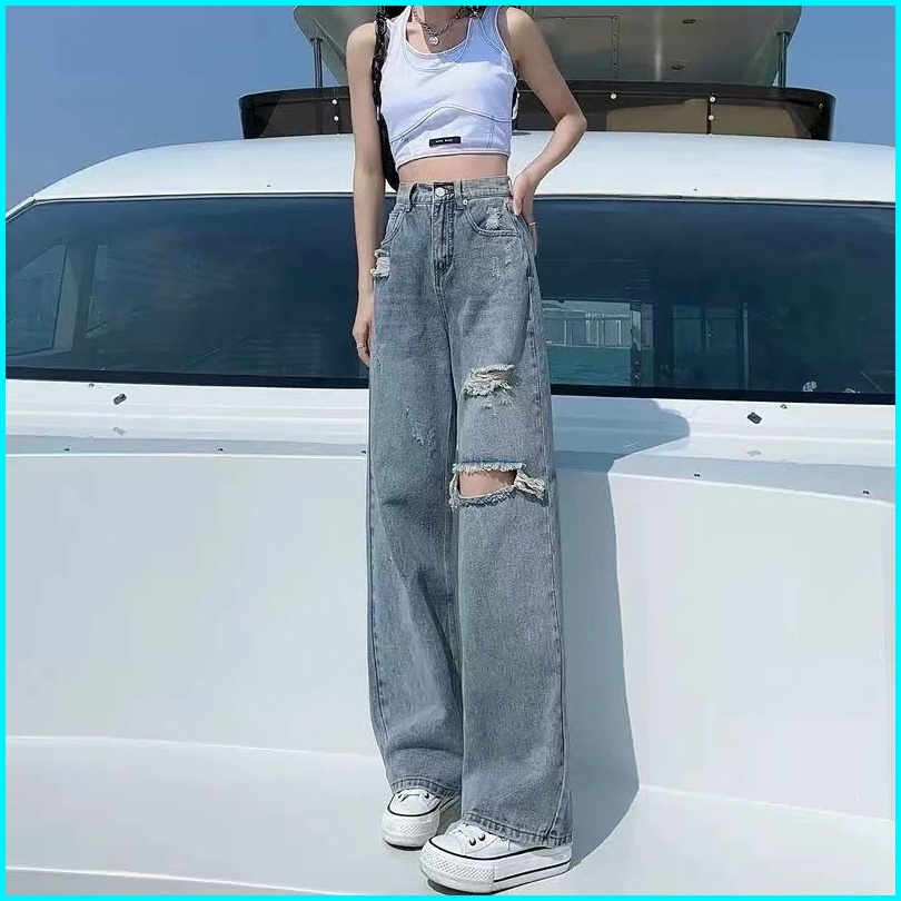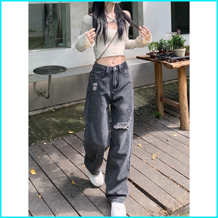 Celana Jeans Sobek Wanita Kekinian Highwaist Kulot Jeans Ripped Loose Celana Panjang Jeans Denim Import Korean Style Oot