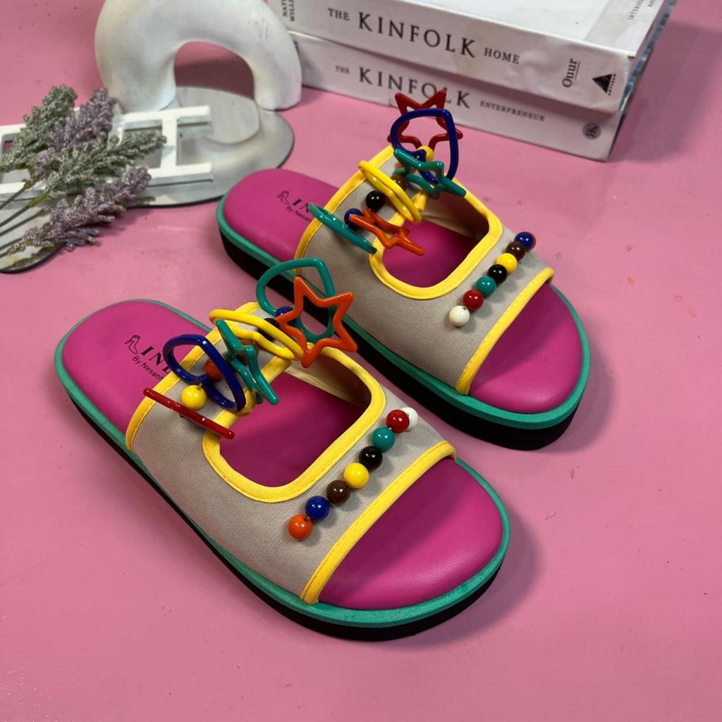 JULY PINK SANDALS PLATFORM WANITA KEKINIAN NESANH JULY SANDAL SLIP ON LUCU WARNA GONJRENG TREND FASHION WANITA