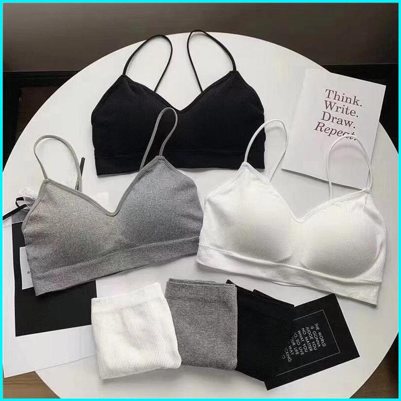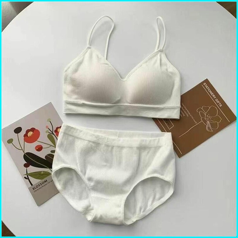 Feminin Set Bra Dan Celana Dalam Polos Daleman Wanita Sport Bahan Elastis