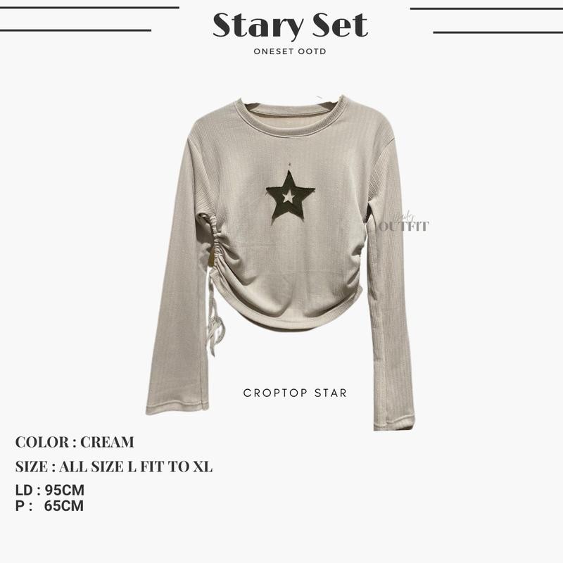 Outfit Cewe Skena ( Kaos Star + Celana Kulot + Pashmina ) One set OOTD Hangout - Stary