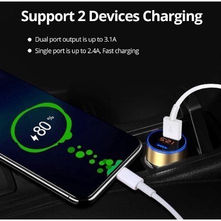 Charger Mobil Colokan 2 Ports 3.1A 12V24V Usb Output Cepat