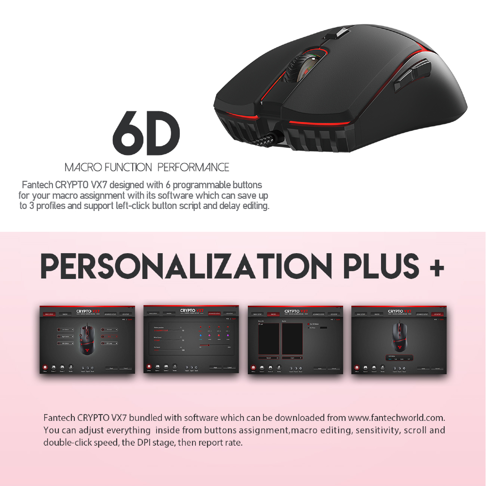 Mouse Gaming Fantech Crypto Vx7 Vx7v2 Macro Programmable Wired Rgb
