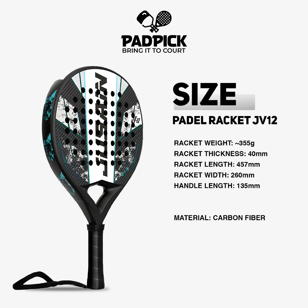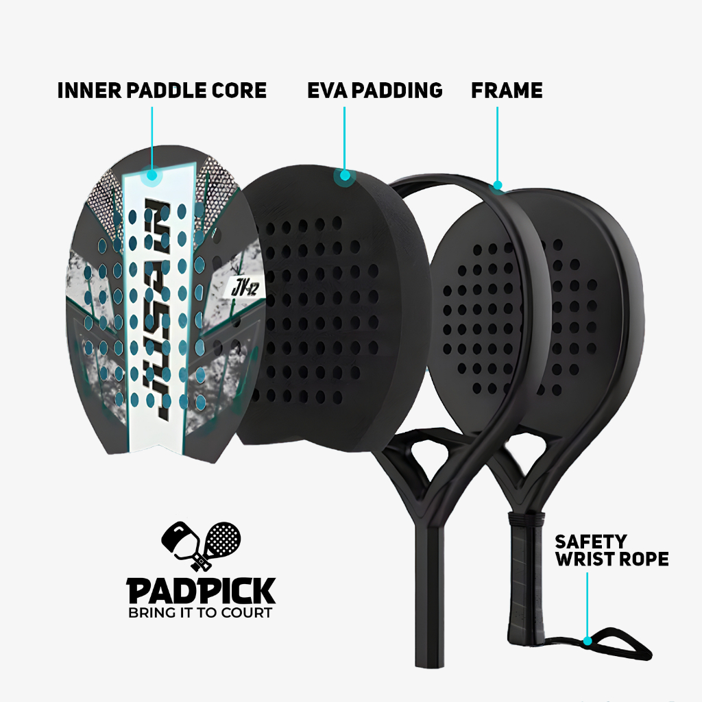 PadPick Padel Racket JV12 Jusain Paddle Carbon Fiber EVA Core Lightweight Racket Raket Padel Ringan Stabil