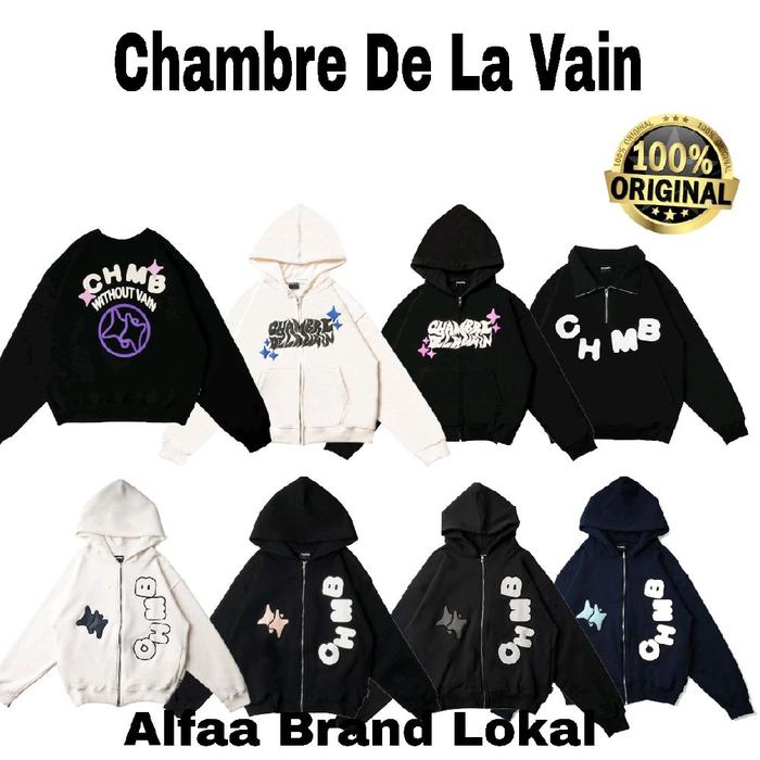 Chambre de la vain Hoodie boxy basic Halfzip Black White Forever Pil