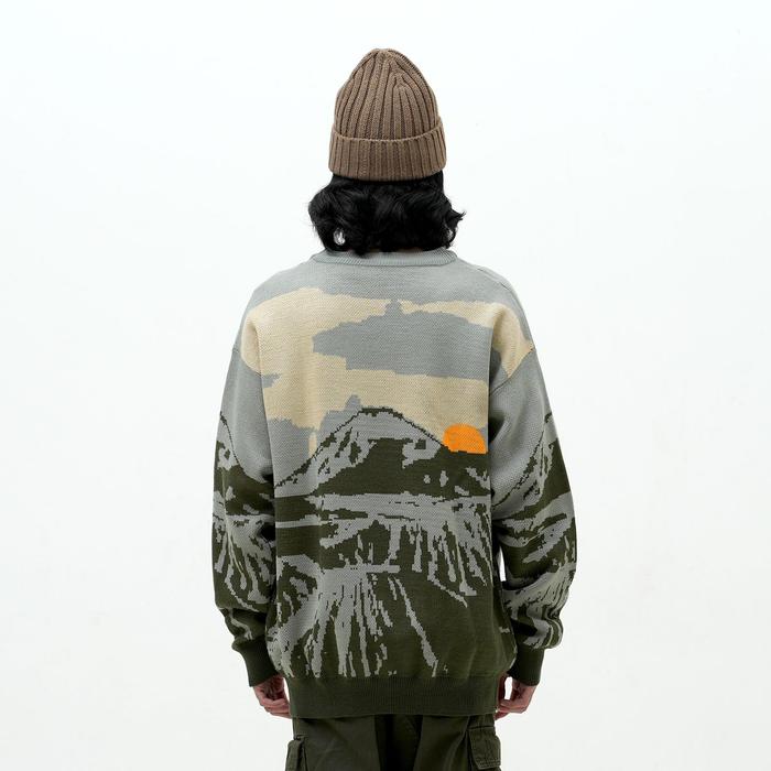 Roughneck RS002 Grey Mount Bromo Knitwear Crewneck Panjang Pria Sweater