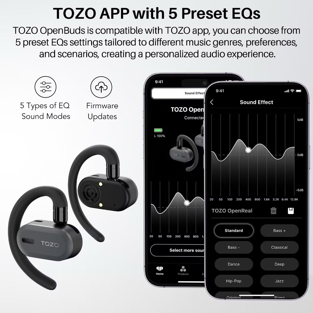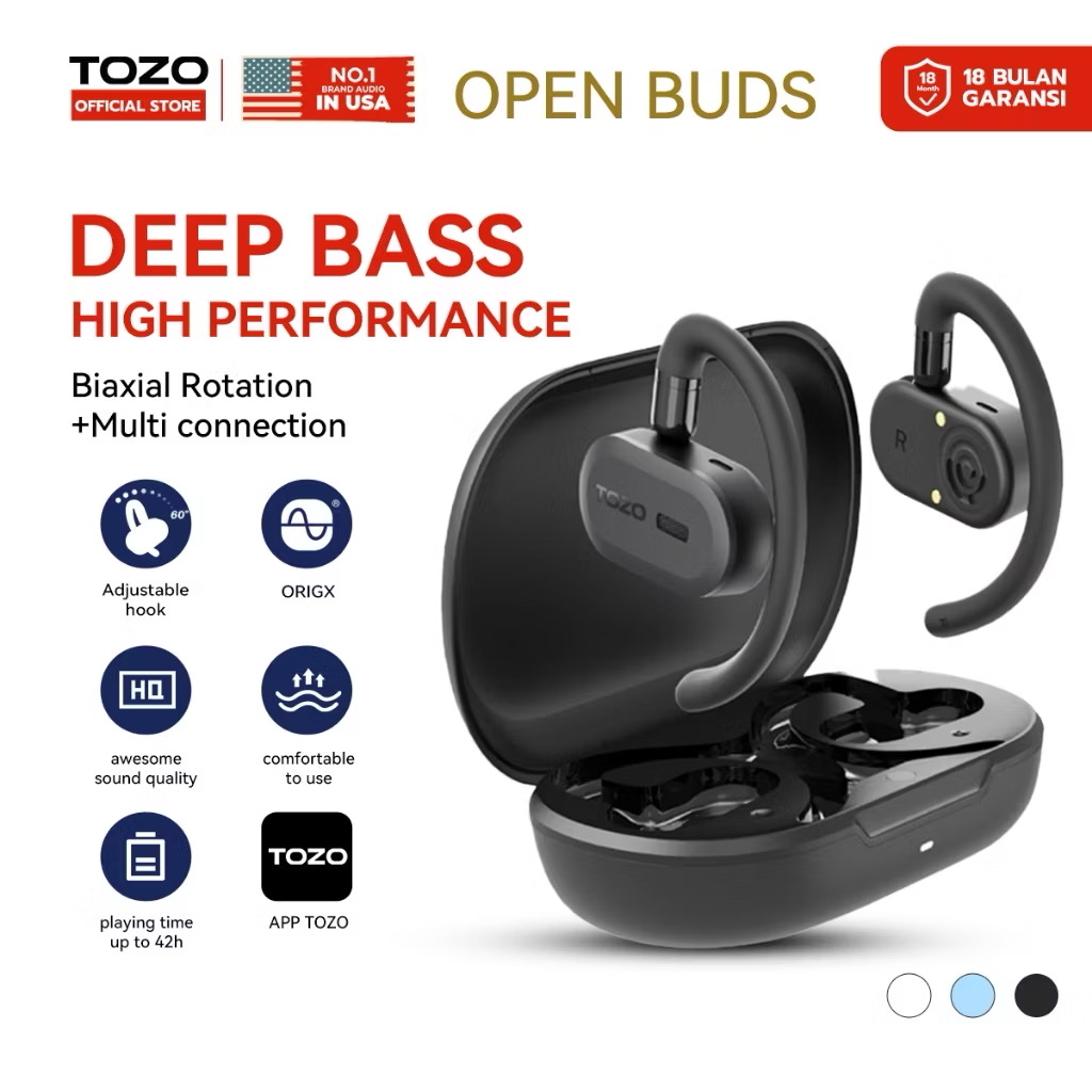 ORI Tozo Open Buds Sports Exercise Wireless Earphone Bluetooth 5.3 Over-Ear Touch Control Headset with Dual-Axis