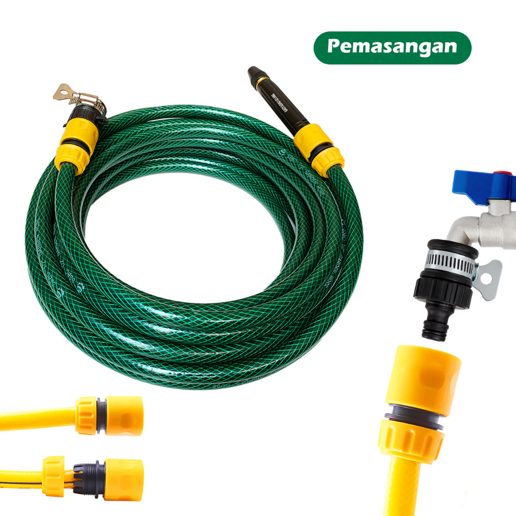 Selang Air Gaoyashuiqiang Semprot Cuci Motor Mobil Taman Benang Hijau 2510 Meter Paket + Konektor Bonus Anti Tekuk