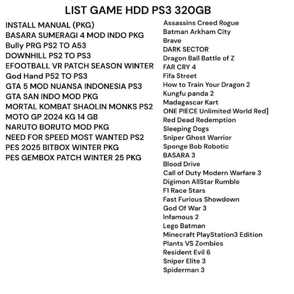 FULL GAME Hardisk Eksternal PS3 HDD PS3 500GB 320GB 250GB 160GB Support PS3 CFW/MNCM