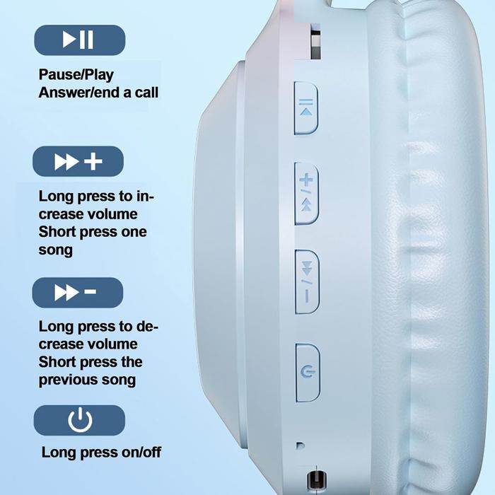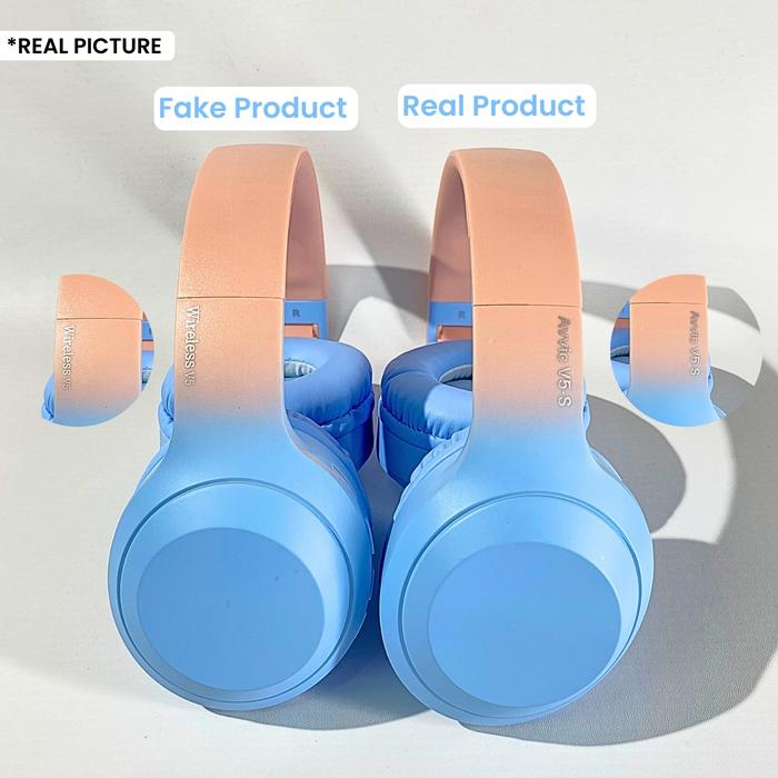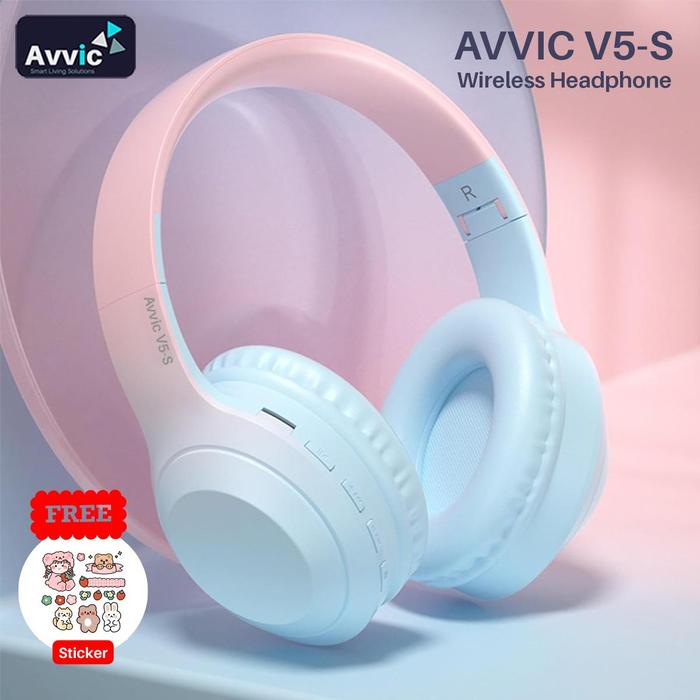 Avvic V5-S Wireless Headphone Bluetooth Gradient Color Headset Stereo Hifi Bass Pink Biru Earphones Ponsel - Blue Pink
