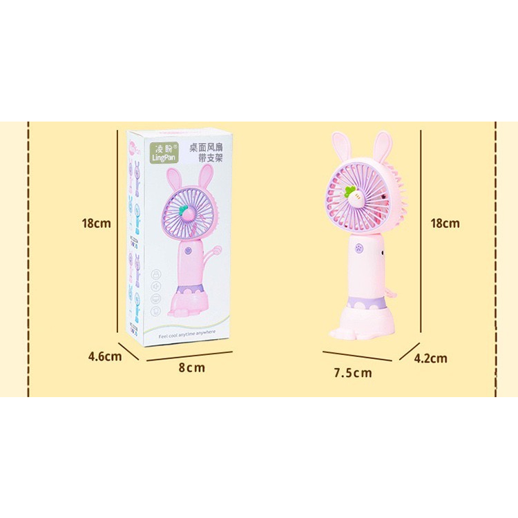 K01 Kipas Angin Mini Portable Usb Motif Kelinci Lucu Free Lanyard Dan Stand Kipas Angin Mini Genggam Lucu