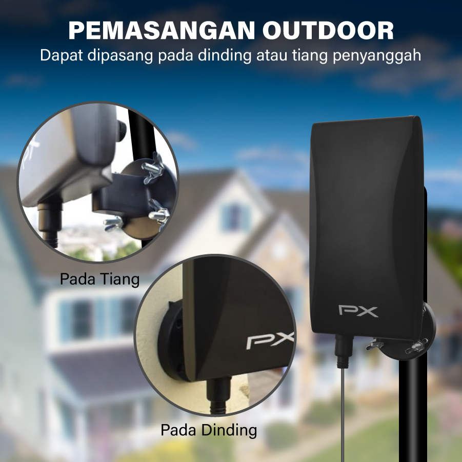 Antena Tv Digital Px Da5400B Analog Booster Indoor Outdoor Kabel 12 Meter