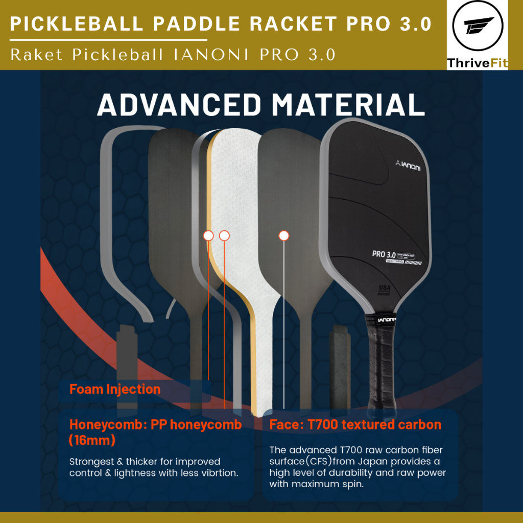 IANONI Pickleball Paddle PRO 3.0 T700 Raw Carbon / Raket Pickleball IANONI PRO 3.0 T700 Raw Carbon